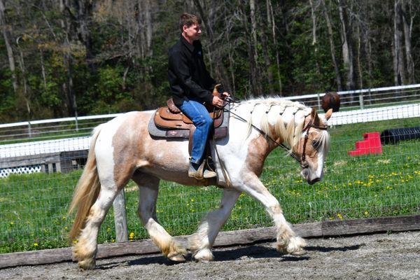 Honey- 15.2 h 11yr gypsy/shire palomino pinto mare. Talk about the coolest versatile go have fun kind of horse. I have really started to hunt these types down because it seems like people are just asking for athletic fancy types that are a bit smaller and really safe. I think she checks all those boxes!
