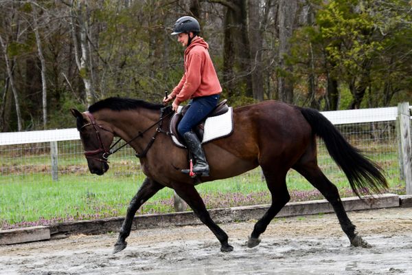 Midnight is a 16.1 h 5yr percheron/qh cross mare. Not sure she had much riding outside the ride the seller did on her but talk about one smart mare! She is transforming in a way that really makes me want to say hey this is why we buy these cool driving types! Such a good mover. Exceptionally brave and willing. She has been also doing a bit of lunging to show her how to use her body differently and that really shows up with the riding. We have ridden her western and today she went english. She also hacked around the xc field.