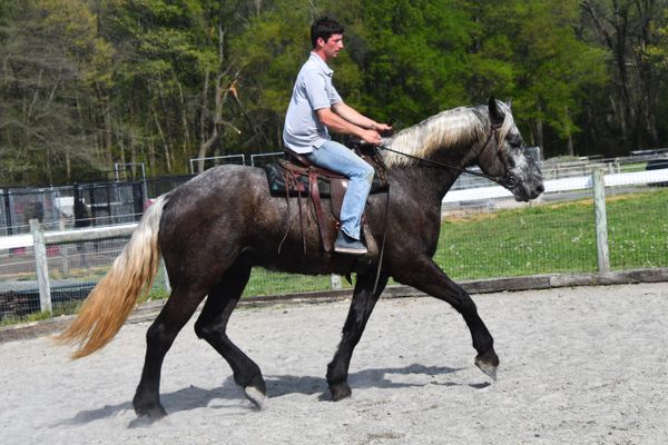 Sam had him for about five months give or take and really did an amazing job getting him going. He is a much different horse now. He did a lot of ring work and out of the ring work with him. I honestly wish I had lived closer so I could have observed more. It's funny to see how light and soft this giant horse rides. That canter...it's lovely for a huge horse. Justin said he feels like riding a couch. We are still working on the mounting which needs to get worked out because well not everyone can mount 17.3 h from the ground. I do think he will figure it out though. Once he learns something he really has it down. I know Sam had gotten all this worked out but of course whenever you bring a horse to a new place/new people they will resort back to some behaviors so you just need to work through it. We are happy with him with just a week or so of riding on him since coming back. He is going to be an amazing partner for someone wanting a big yet athletic horse.