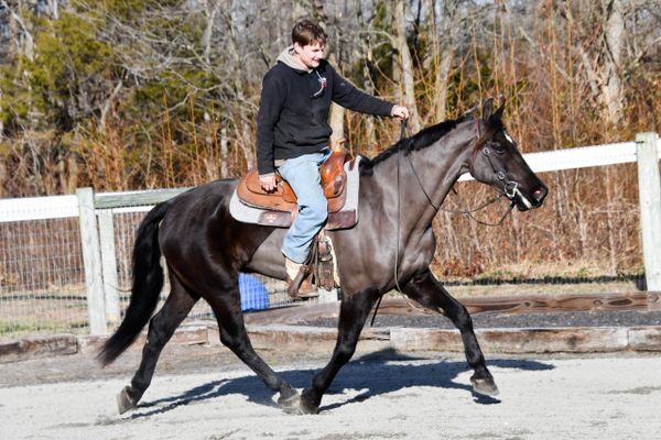 Spade- 6yr (not yet verified) 15.3 h crossbred gelding that is just the kindest type. His background is more driving with some riding but he is just one of those horses you can get on and go. He goes around in a nice level frame either english or western. He does have a very nice canter just needs a bit of leg to get to it but that will come as he figures it out the canter is allowed. He is soft, light and balanced. Rides on the contact or on the buckle. Just seems like the type that will work all day for you.