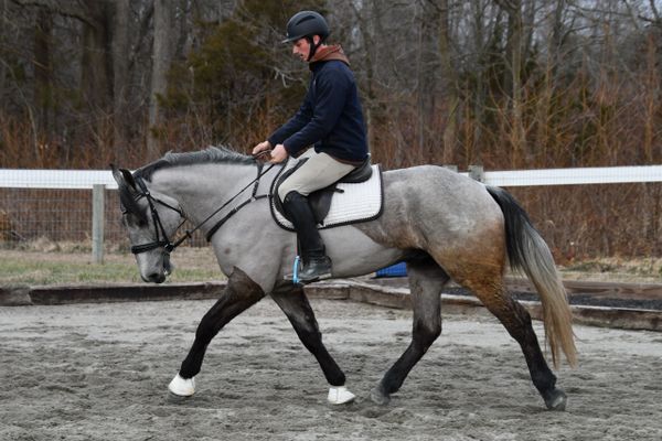 I am sure he is a fairly green horse but he was well started western, on the trails, etc before I bought him. He is a little unsure about the contact but that will come as we go. I just love the overall shape and balance. Nice mover. Really nice canter! He is quite athletic.