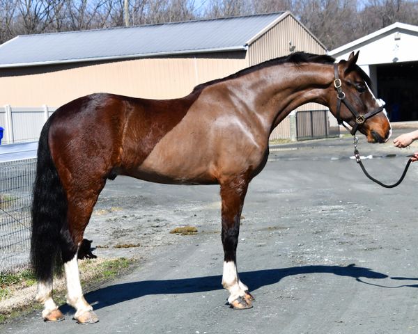 He is 4yrs old and 15.3 h rides and drives. He got a few weeks of quarantine and is now getting his glow up and evaluation. I think he is super cool and I really just love these driving horses. It is a fantastic background and they are always the most fun.